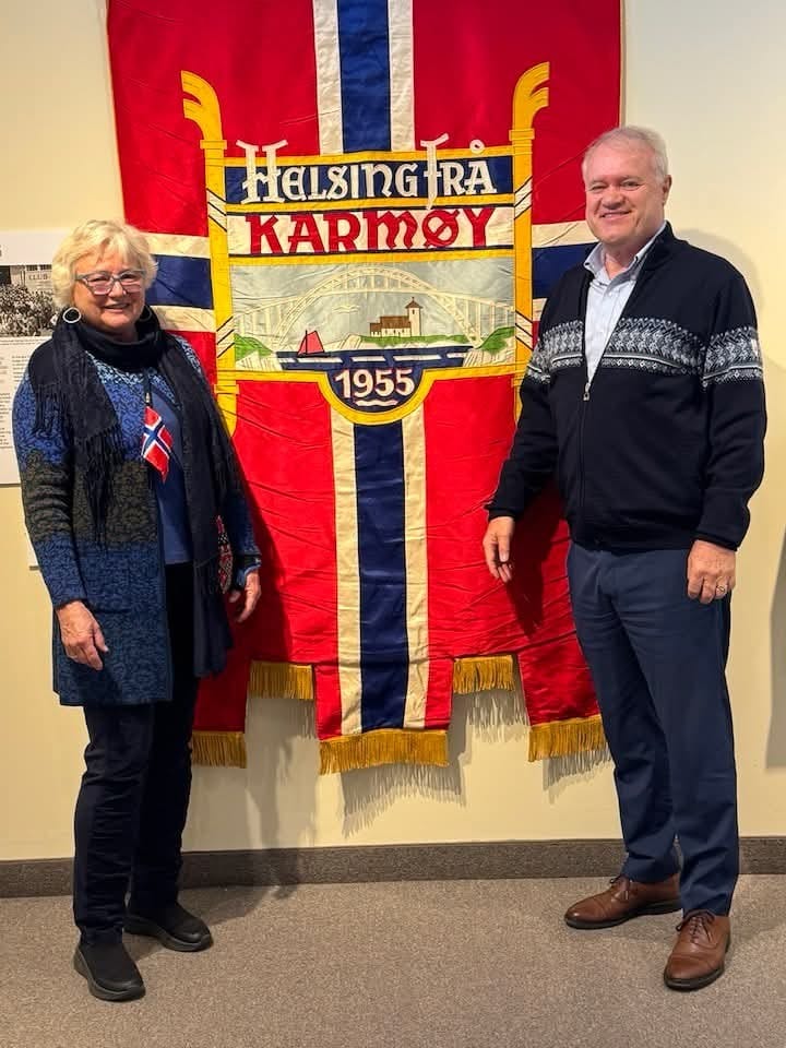 Bilde er fra Vesterheim Museum, Decorah, Iowa, oktober 2025. Til høyre Tom Monson med røtter fra Ryfylke.